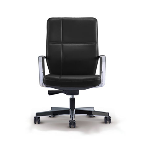 Midback chair | Weight sensing mechanism | Chrome finished die cast alumunium armrest and base | Height adjustable lumbar support | Full leather upholstered for seat, backrest and back cover
